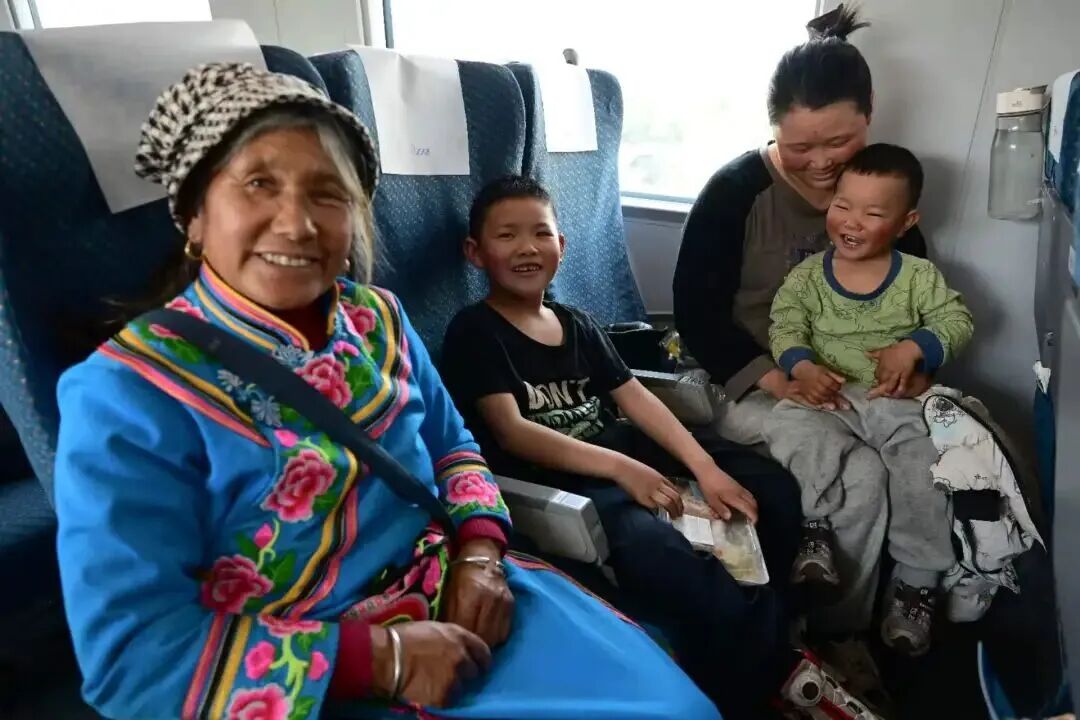 另一节车厢里,彝族小朋友朱春锦和表姐王琴格外兴奋。他俩一个家住河西镇、一个在西昌市区,平时难得相聚,春假正好结伴同行。
