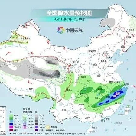6日,江南中南部、华南北部等地有中到大雨,局地有暴雨或大暴雨,部分地区伴有短时强降水、雷暴大风等强对流天气。中央气象台4月6日6时继续发布暴雨蓝色预警。