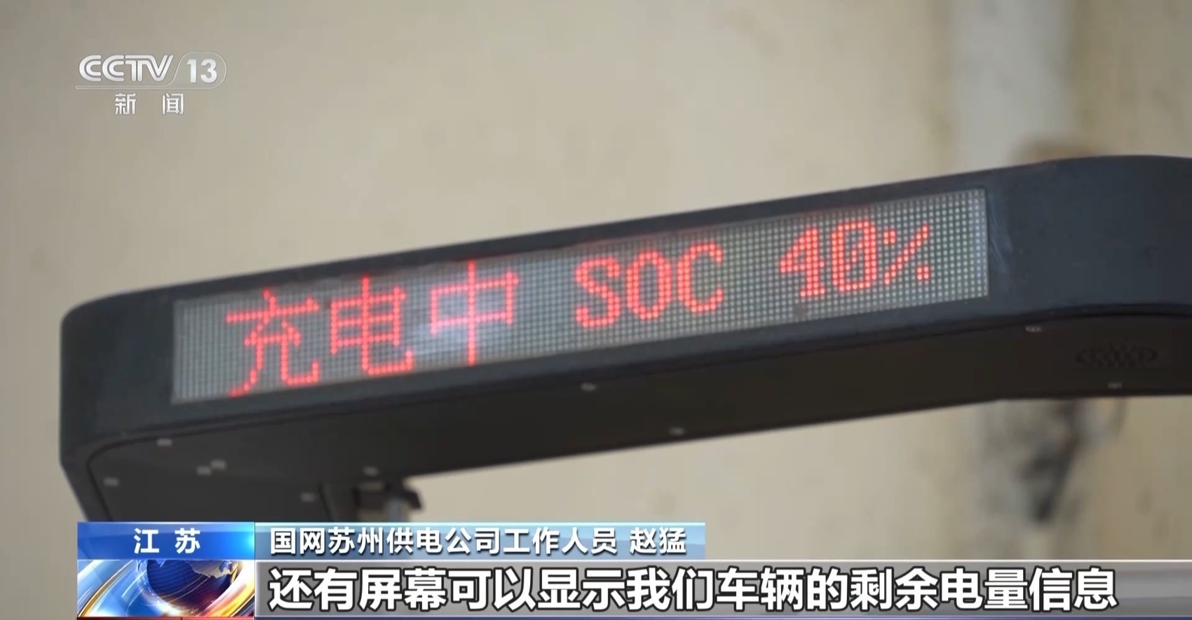国网苏州供电公司工作人员 赵猛:在新的充电桩上,还有屏幕可以显示车辆的剩余电量信息,这样车主在充电的时候能够更安心。全市的供电所也作为“便民驿站”对外提供停车和充电服务,有效缓解了区域的充电压力,让游客玩得更安心、更舒心。