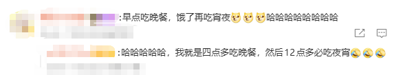 还有网友担心:早点吃,晚上饿了再吃宵夜?