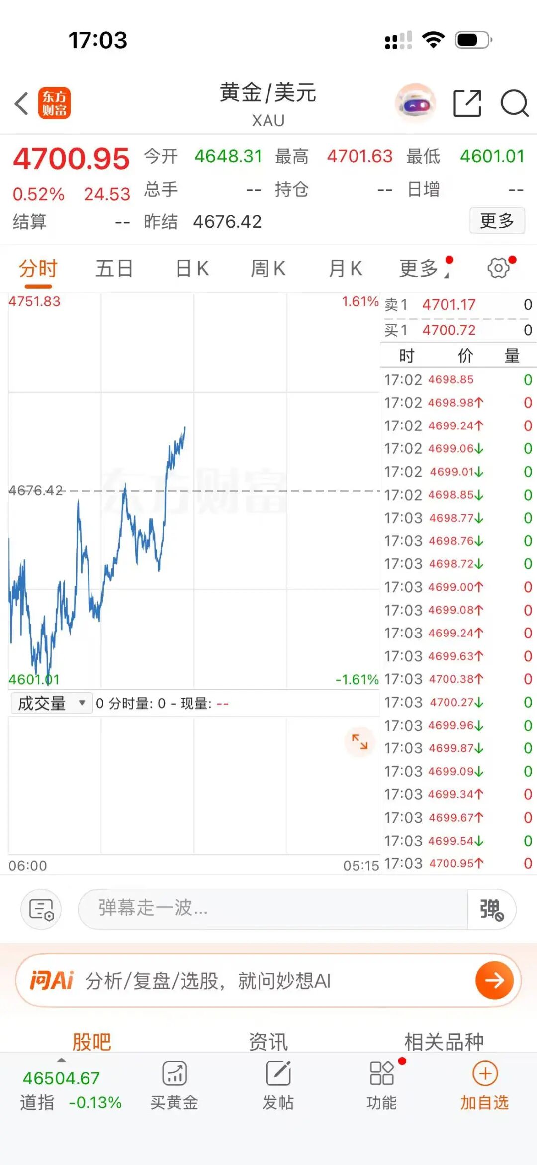 财联社4月6日电,现货黄金向上触及4700美元,日内上涨0.52%。现货白银涨0.45%,报73.28美元/盎司。