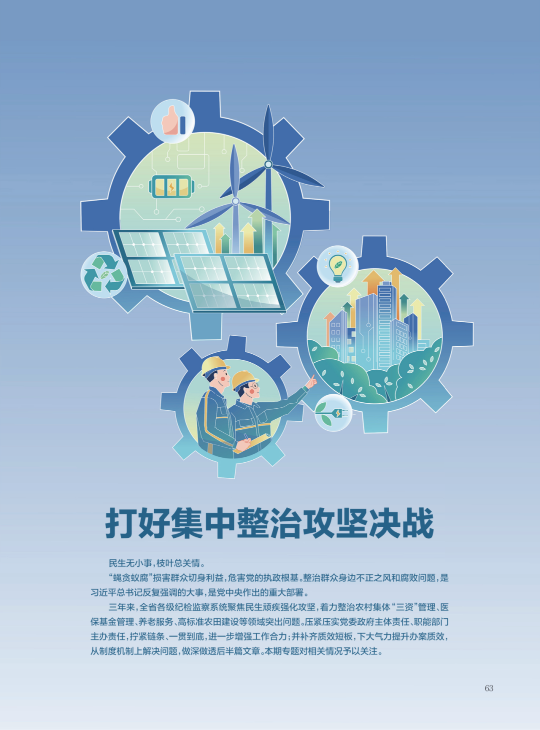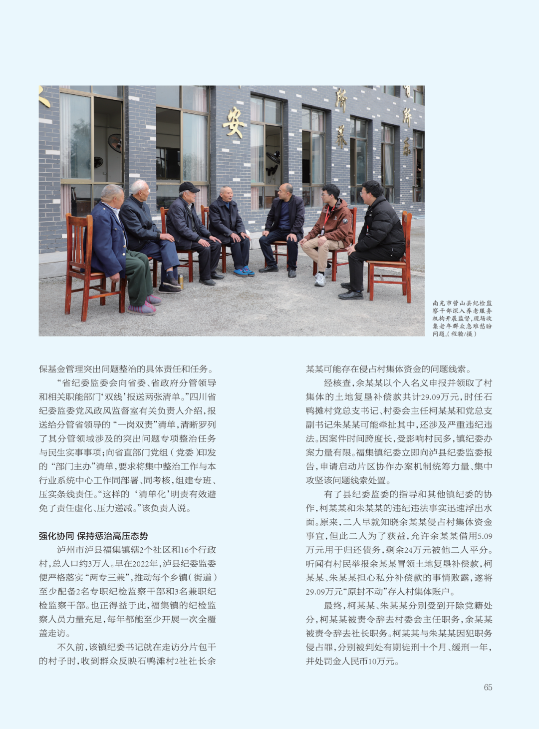 县级作为“主战场”作用也充分彰显。以南充市营山县为例,该县将“群腐”整治作为“一把手工程”,成立以县委书记、县长任“双组长”集中整治群众身边不正之风和腐败问题领导小组,组建“问题收集、线索处置、纠风治乱、信息简报、工作保障”5个工作专班,以最强力量保障全县“群腐”集中整治工作开展。“领导小组每月专题研究整治进展,针对养老服务、医疗保障、乡村振兴等7个重点领域,逐一明确牵头部门、工作要求。”营山县委有关负责人介绍,县委常委班子还开展“下沉式调研”,直插田间地头、社区院落、生产一线,现场收集群众诉求;同时,实行分片包干,对联系乡镇(街道)、部门整治工作实行“周调度、月研判”,有效压实主体责任。