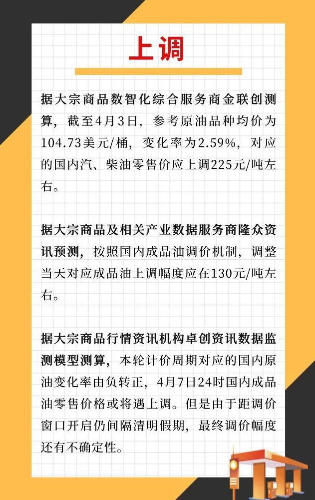 预测汽柴油上调225元/吨(需等明天公布最终涨幅),折算为0.17-0.20元/升。私家车加满一箱油(容量50升),需多花9元。(预测仅供参考,请以最终发改委和各地油站公布为准。)