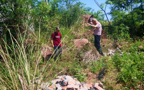 2025年8月,李强(右)爬坡上坎,实地核查电缆线主体的现场