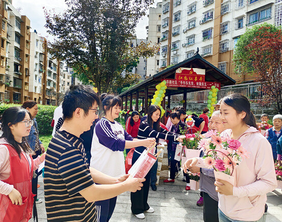 内江市市中区玉溪街道新华路社区利用社区经济收入资金,组织社区工作者和青年志愿者开展居民手工活动。图/朱星勇