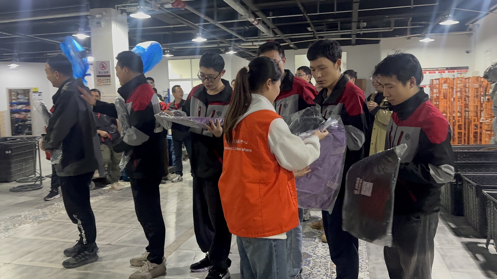活动末尾,大家还收到了行李包、手套等实用物资。快递员林杰一边试戴新手套一边说:“希望以后能多办几次,真的管用。”