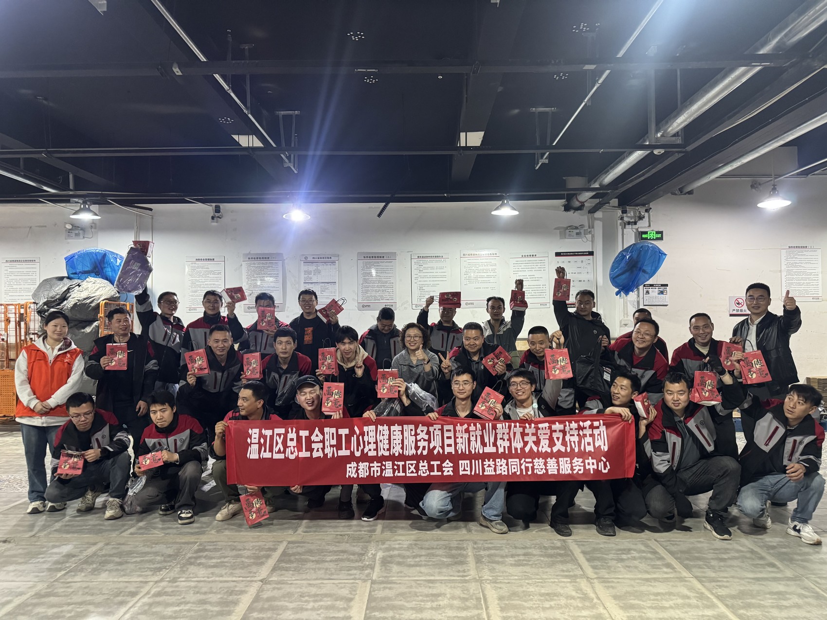 当天,在温江区总工会指导下,四川益路同行慈善服务中心联合公平街道总工会,为这里的快递员举办了一场特殊的心理健康活动。没有冗长的讲座,取而代之的是“动作传递”“拼图成组”等小游戏。在“动作传递”环节,一位小哥模仿骑电瓶车疾驰的样子,动作夸张,引得全场爆笑。平日里忙着奔波的同事们,在笑声中看到了彼此生动的一面。