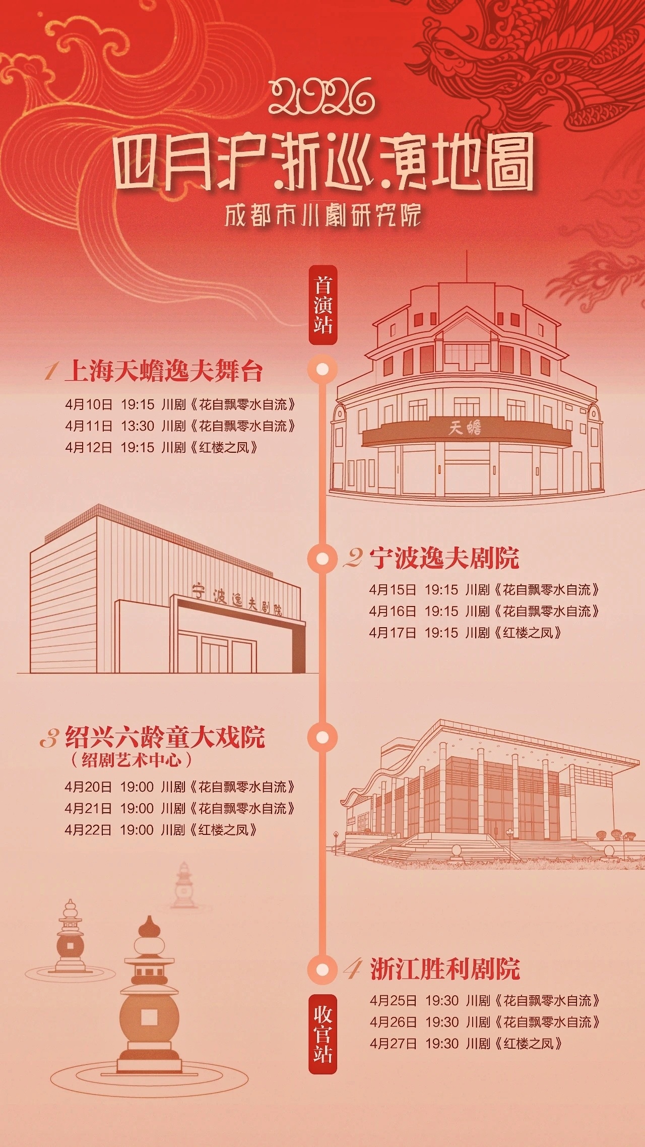 93岁剧作名家徐棻,搭档“二度梅”川剧名家陈巧茹,以两部新编戏女子群像力作献艺,用翻飞的川剧水袖搅动沪浙四城的江南烟雨。4月7日,记者从成都市川剧研究院获悉,4月10日至27日,成都市川剧研究院将携《花自飘零水自流》《红楼之凤》赴上海、宁波、绍兴、杭州四城开启巡演。