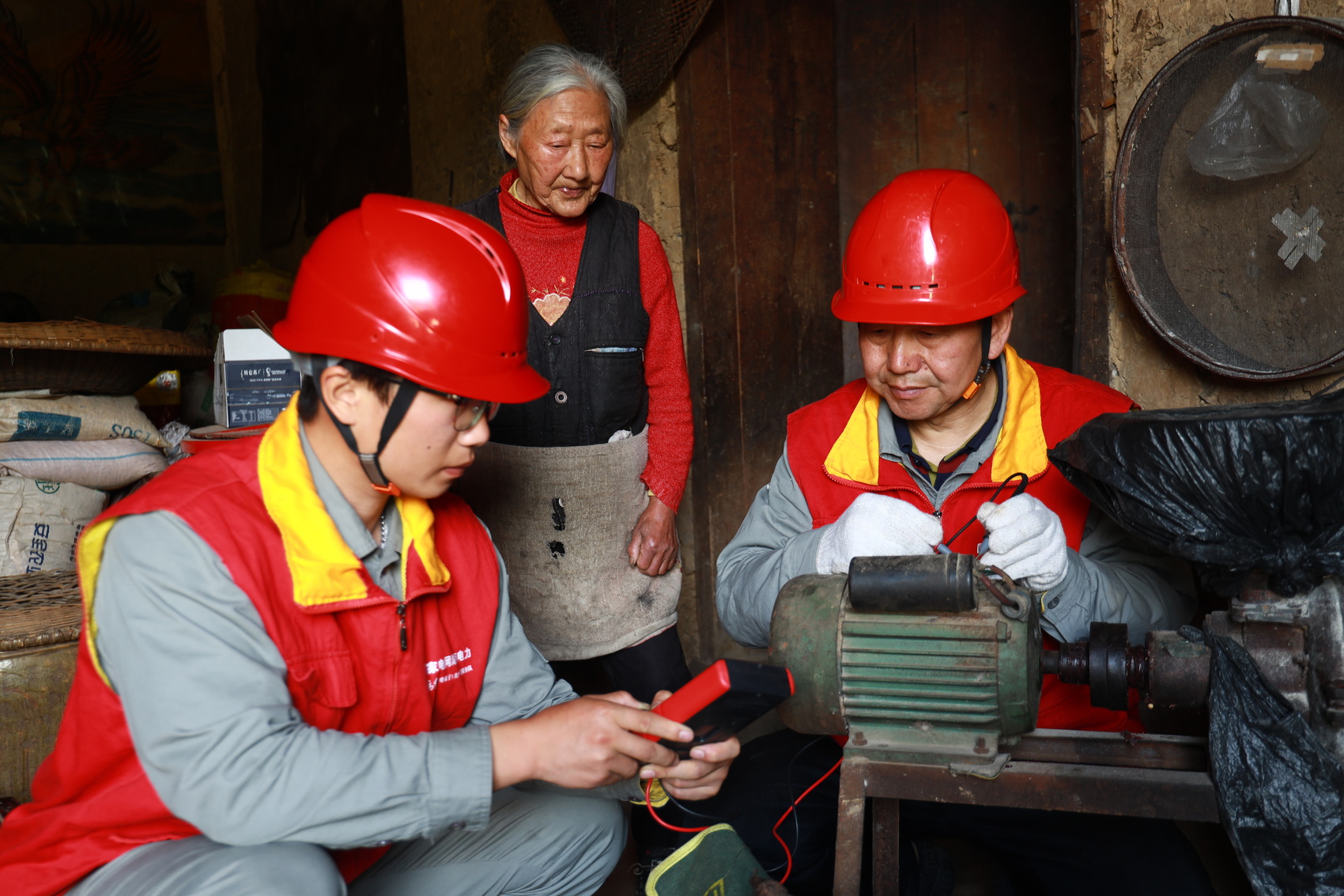 国网湖南电力(电骡子)东方红共产党员服务队队员上门为老人维修电机。国网湖南电力供图