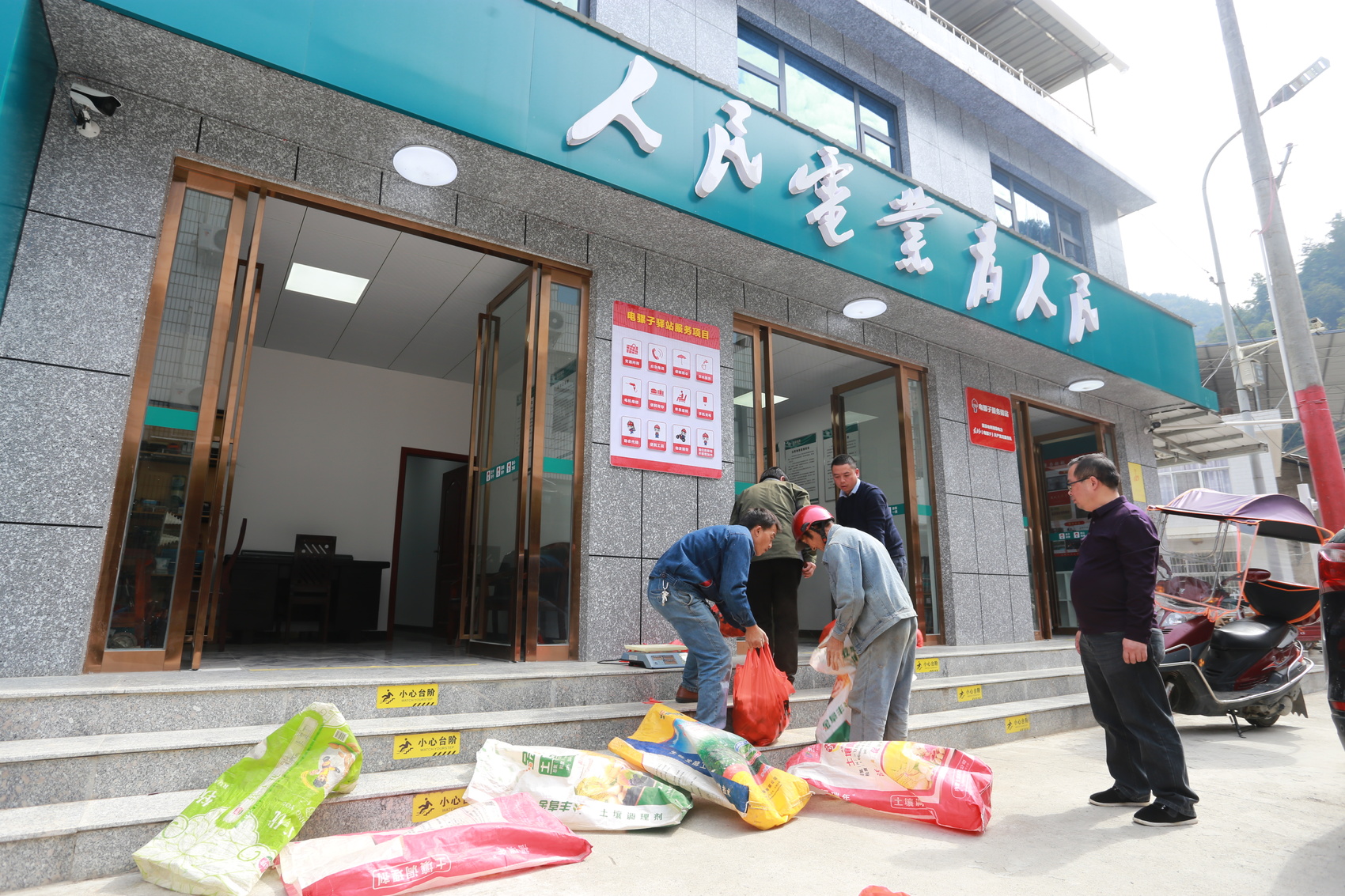 壶瓶山供电所“电骡子“服务驿站,国网湖南电力(电骡子)东方红共产党员服务队队员理村民送来的土特产。国网湖南电力供图