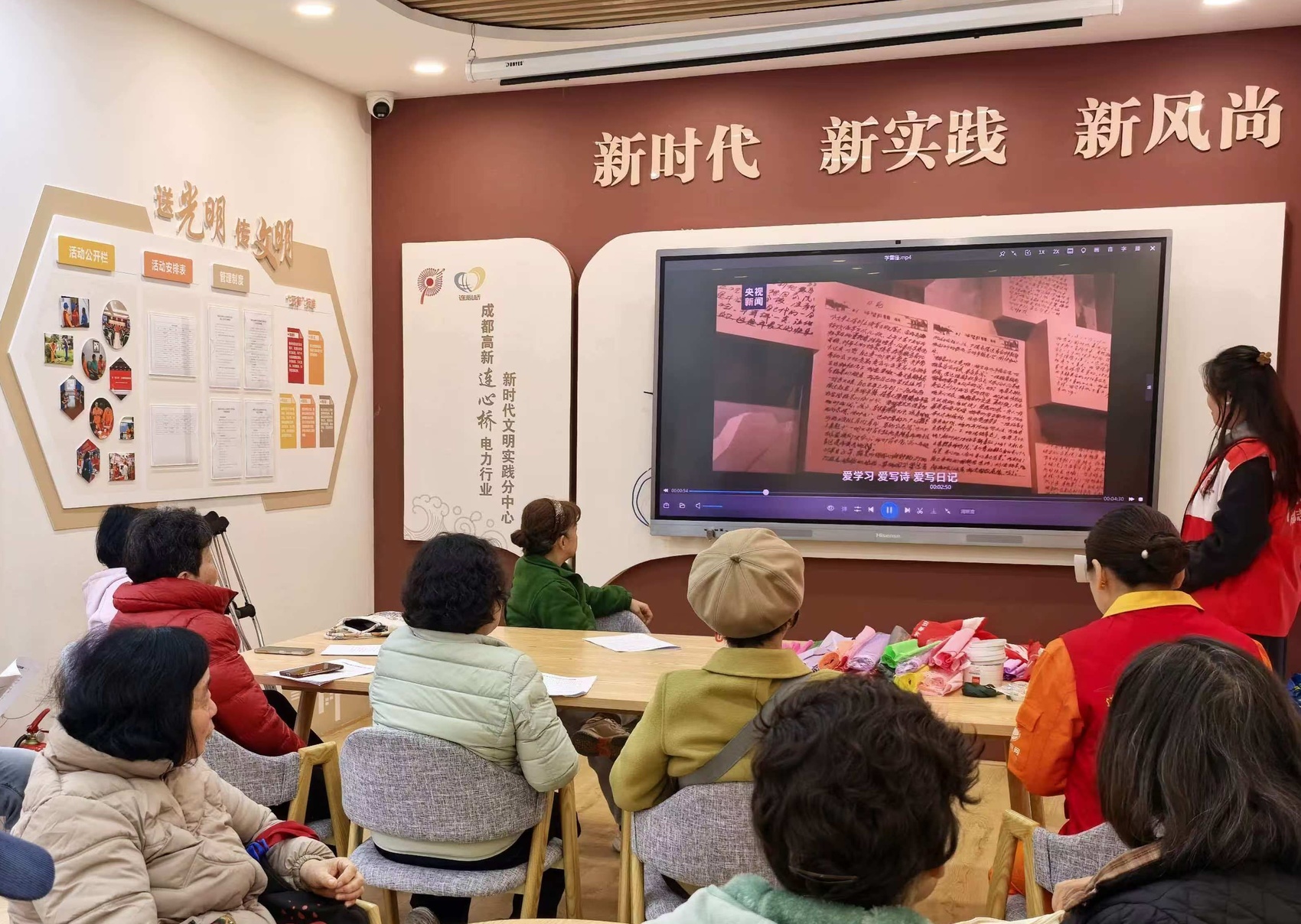 成都高新连心桥电力行业新时代文明实践分中心内,“党的声音进万家”主题宣讲活动现场。成都高新连心桥电力行业新时代文明实践分中心供图