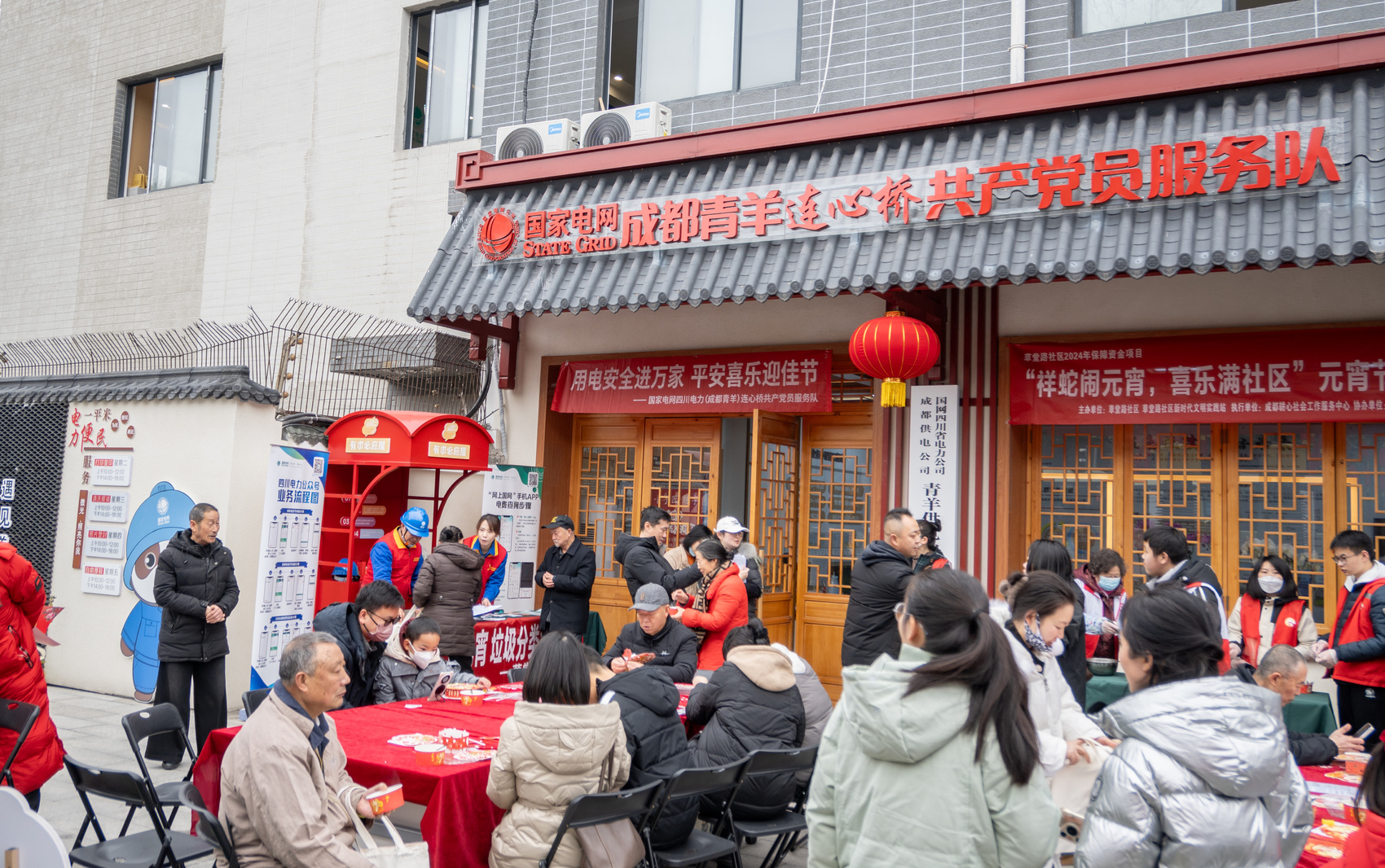 成都青羊草堂供电营业所与草堂路社区共同开展元宵活动。国网成都电力公司供图