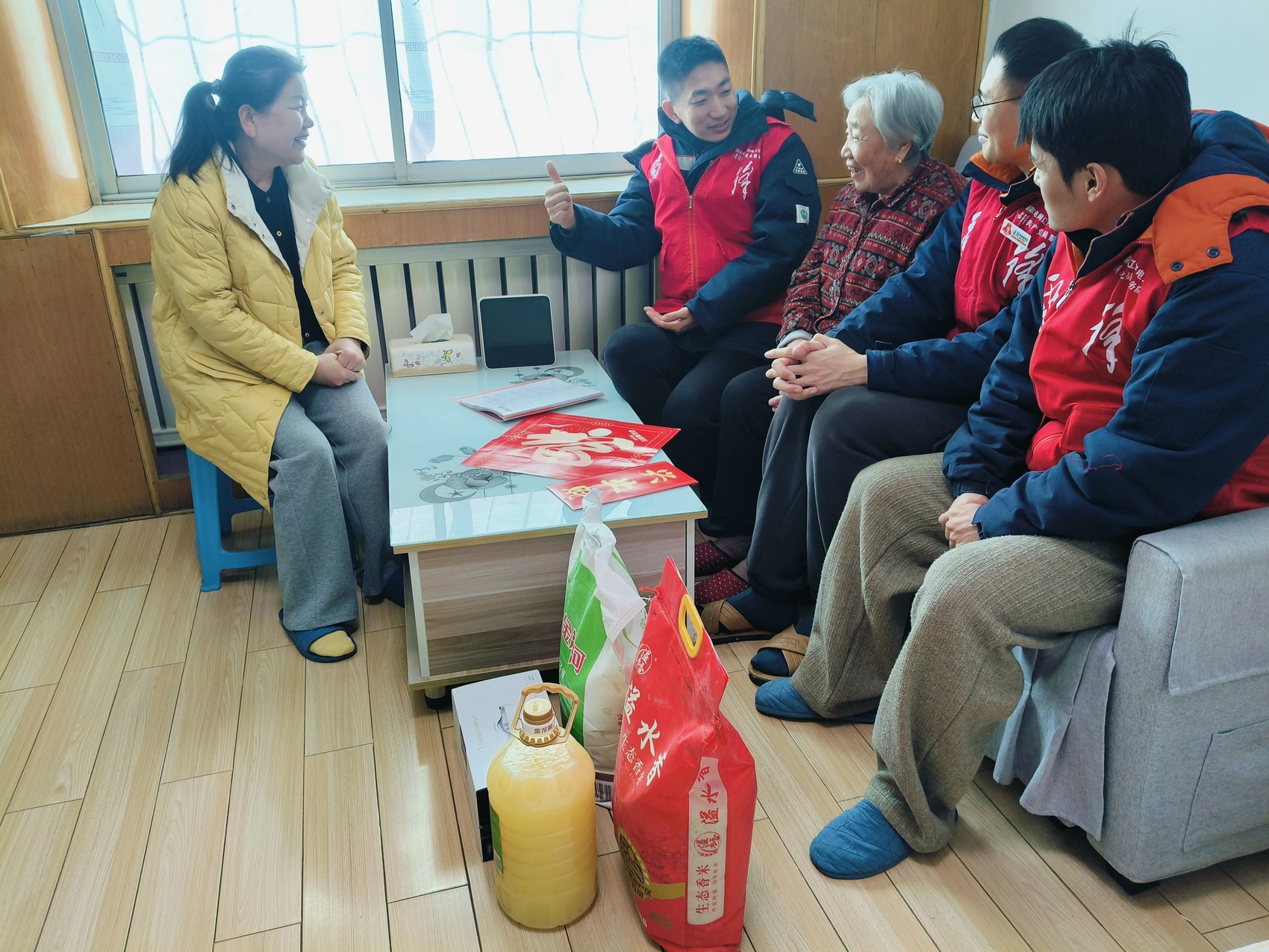 国网辽宁电力抚顺供电公司雷锋服务站雷锋共产党员服务队队员与雷锋社区文明实践志愿者一同上门慰问社区老人。雷锋社区新时代文明实践站供图