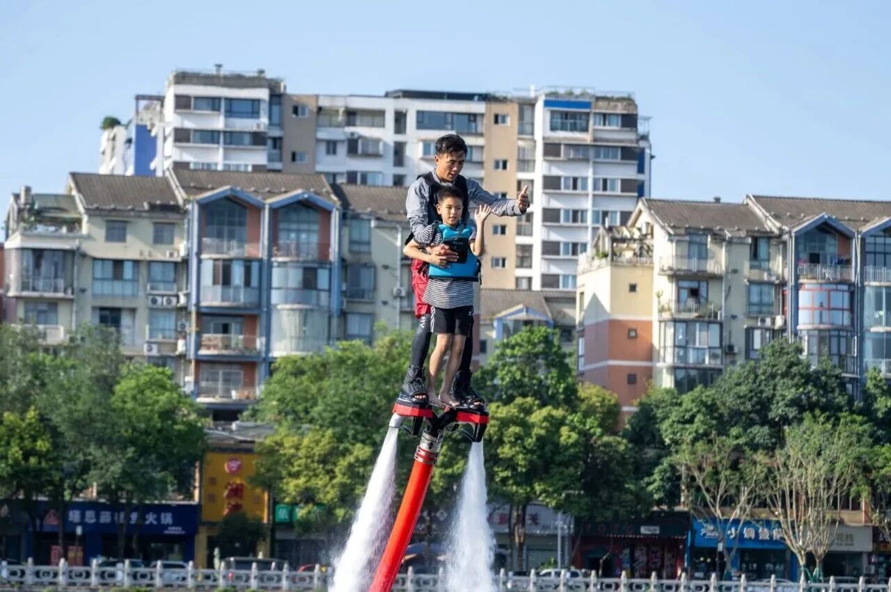 “没想到新津这么好玩!”一位年轻游客刚从摩托艇上下来,兴奋地说。这个假期,新津的运动基因被彻底激活:诺威骑士马术中心里,“新手骑士”挺直腰板体验马背驰骋;亚特波塞冬欢乐世界内,滚铁环、投壶、溪水捉鱼等怀旧游戏让大人小孩同场竞技。