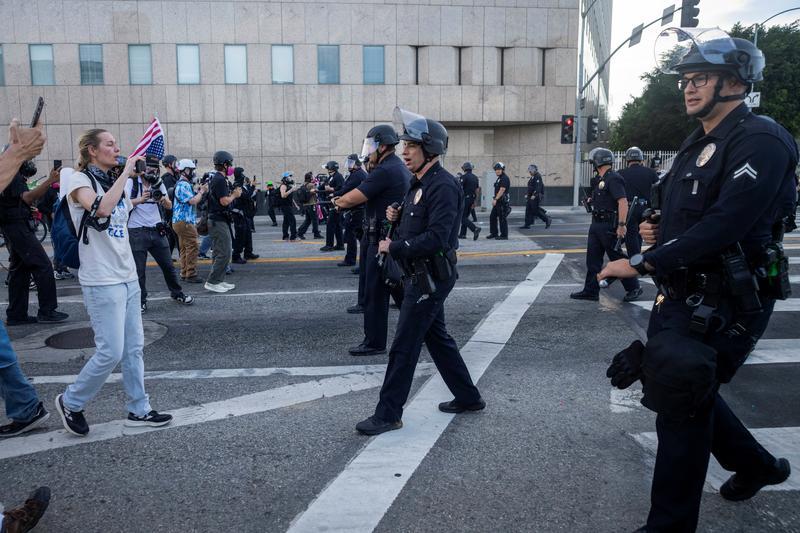 3月28日,警察在美国加利福尼亚州洛杉矶的街头警戒。新华社/路透