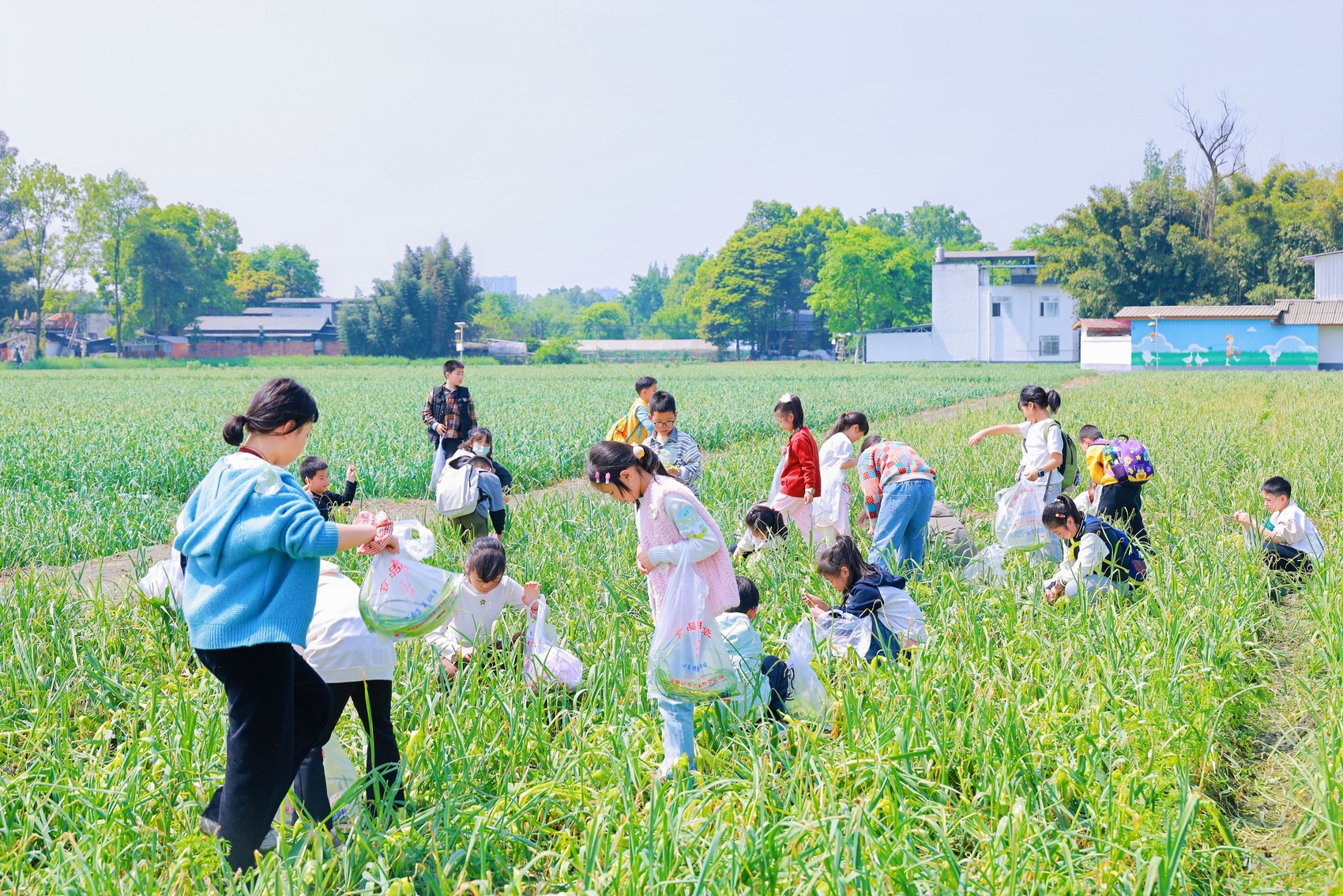 在川派盆景游学基地研习盆景技艺,走进高山村亲手采摘蒜薹……成都鱼凫微旅游开发有限公司整合温江南城与北林的生态、文化、产业资源,推出春假“行走通识研学课程”,短短三天便吸引上千名青少年参与。
