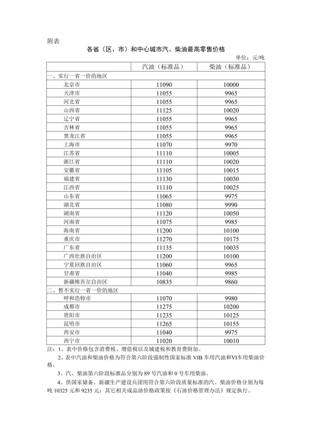 附:各省(区、市)和中心城市汽、柴油最高零售价格