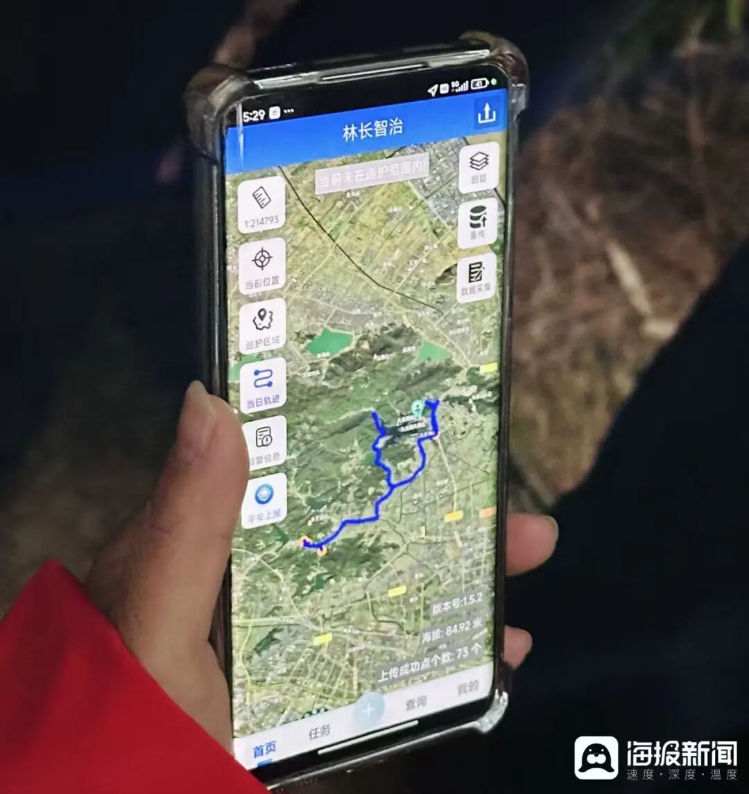 护林员通过手机APP打卡巡护