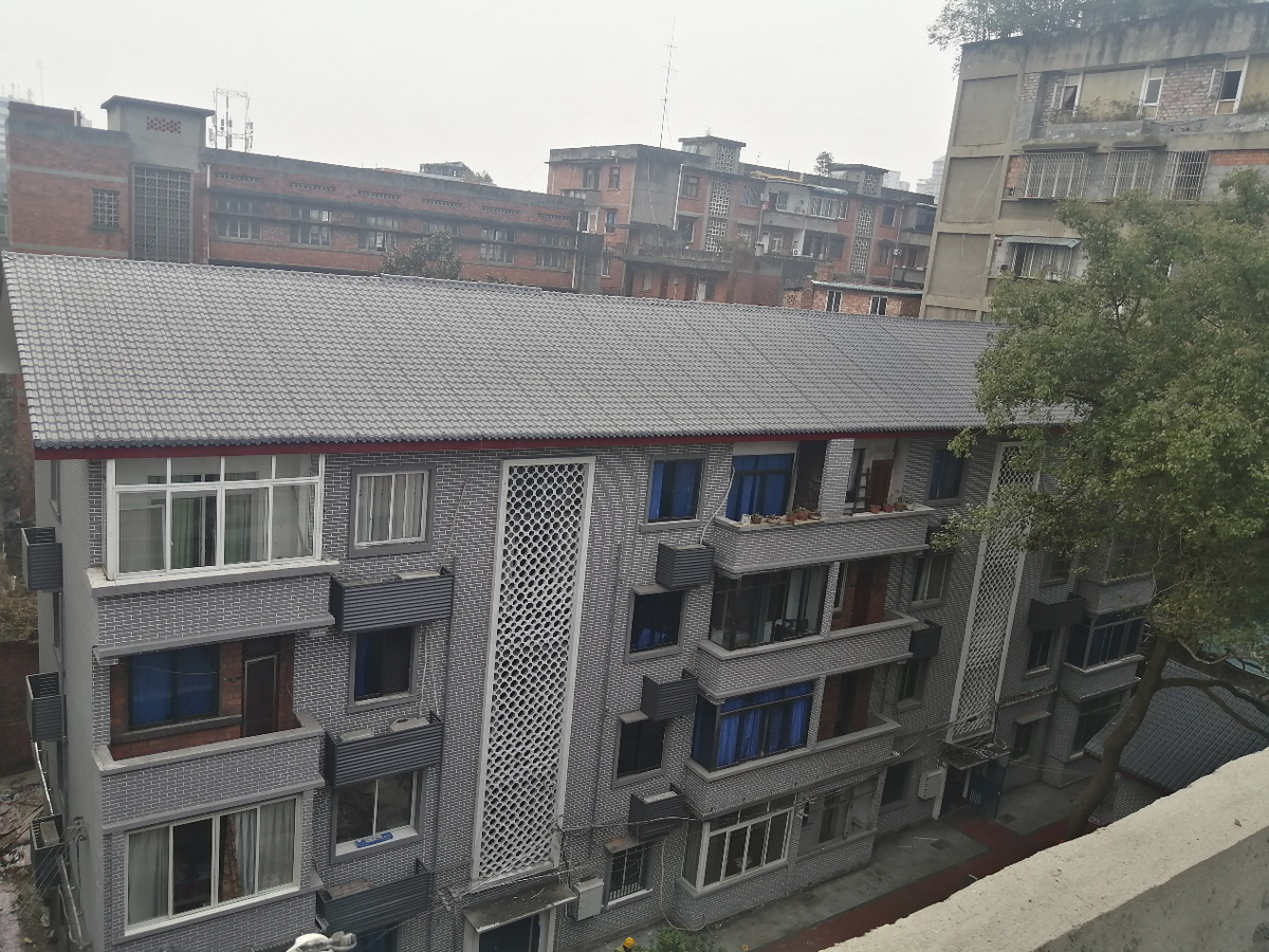 据了解,九龙巷62号院位于顺城街区,是乐山市重点历史文化风貌街区,项目在改造过程中要最大程度保护历史古迹、与周边古建筑融为一体。“我们将院内整体色调按照乐山市城市色彩规划内容选择为青灰色,样板内容包括屋面防水及坡屋顶改造施工、外立面改造施工、空调外机规整、楼道墙面修缮、增设楼道扶手、增加监控安防系统等。”