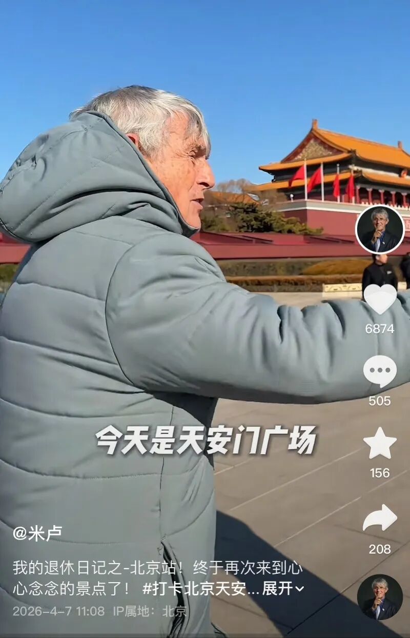 南都记者留意到,4月7日11时许,米卢的社交账号也更新了动态,配文为“我的退休日记之北京站”,视频中,米卢前往北京多个著名景点打卡。3月30日他还曾发布视频分享在北京的观光活动。