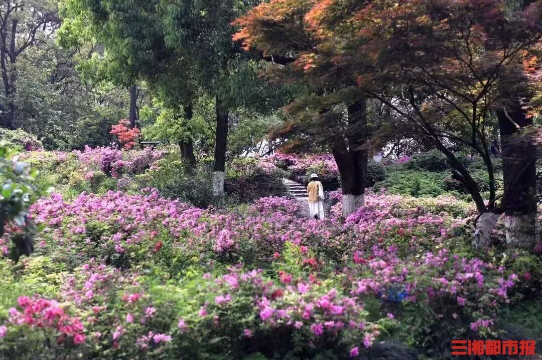如果不想远行,长沙市民在家门口也能感受杜鹃花海的震撼。