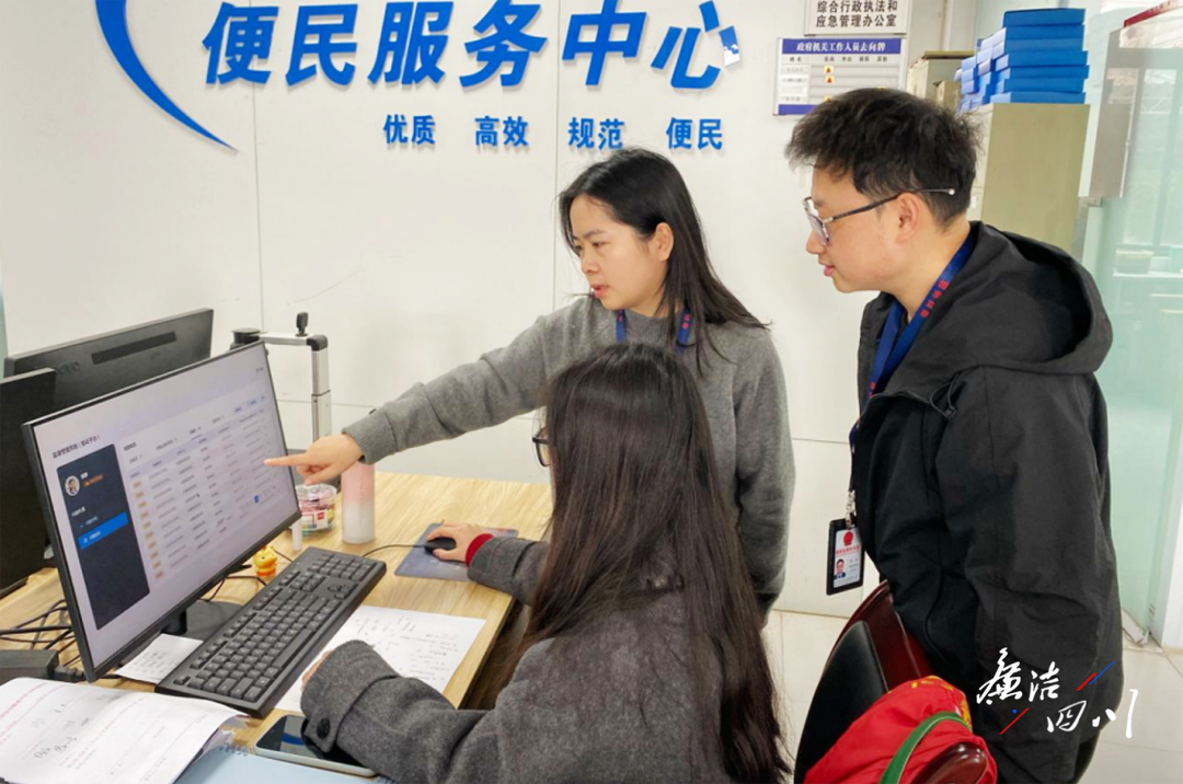 德阳绵竹市玉泉镇纪检监察干部在大数据平台查看问题线索。(林佳鑫 摄)
