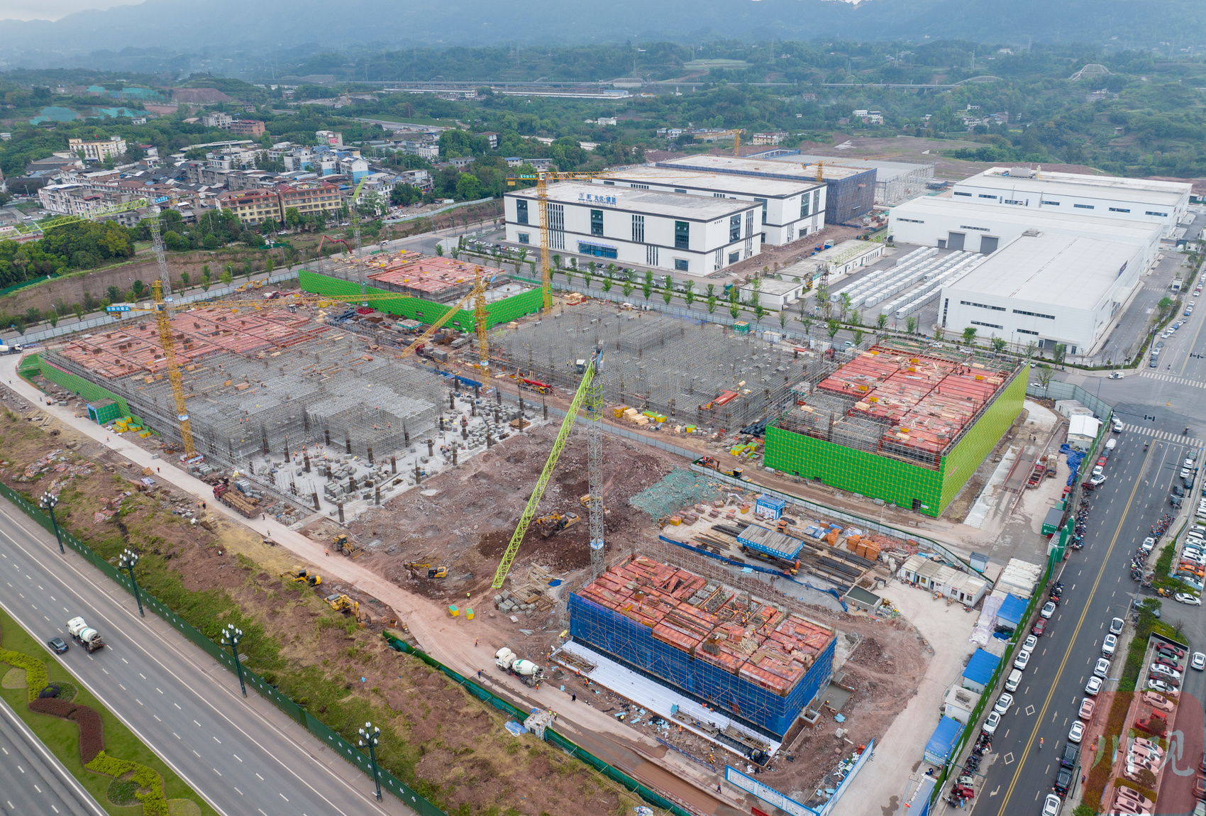 4月,宜宾两大民生地标——重庆医科大学附属儿童医院宜宾医院新院区、宜宾城市体育文化综合体项目同时进入竣工冲刺阶段。