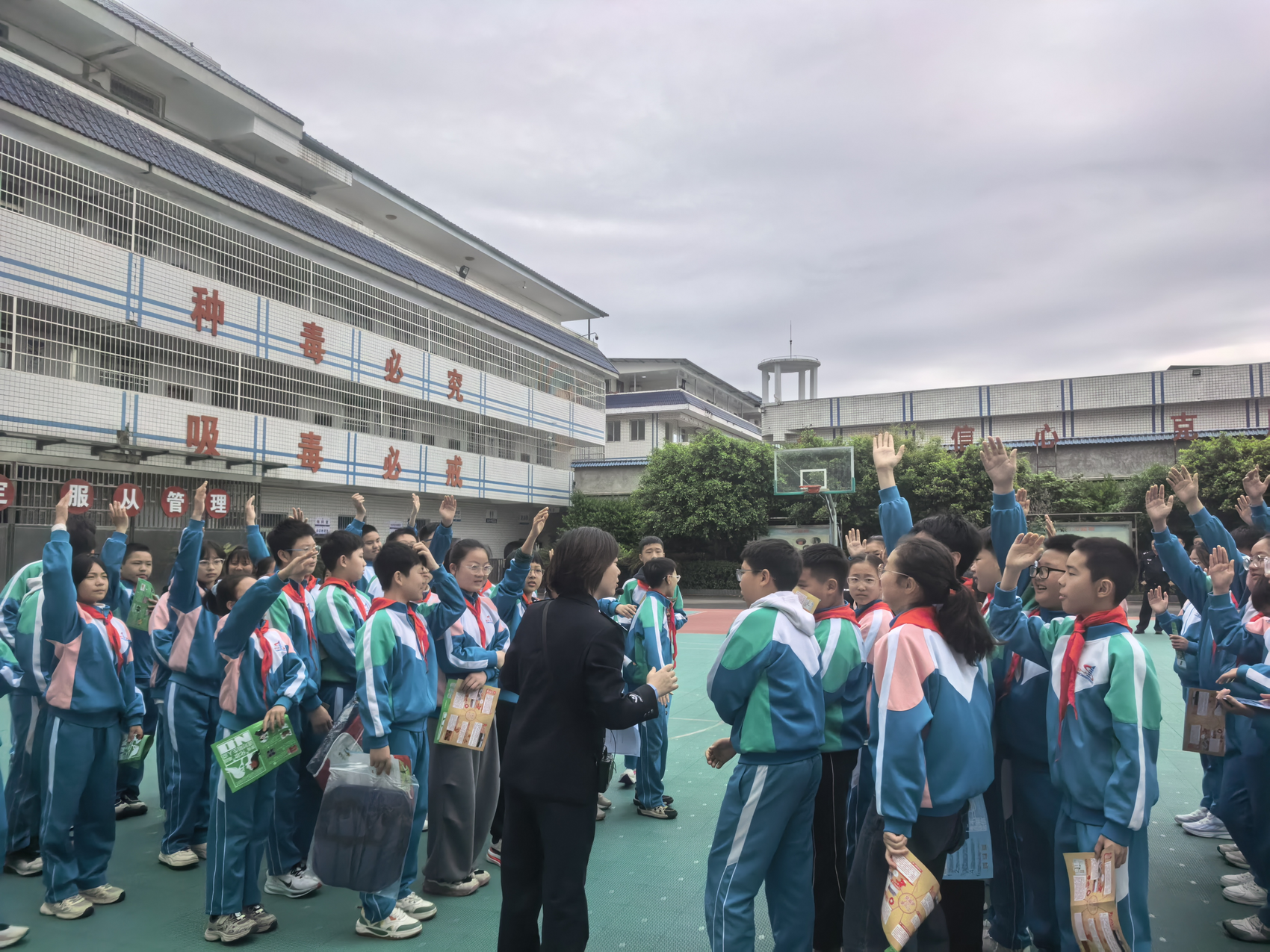 活动尾声,操场互动问答环节火热进行。工作人员围绕核心内容出题,学生积极抢答并获赠小礼品,在趣味互动中巩固所学知识。