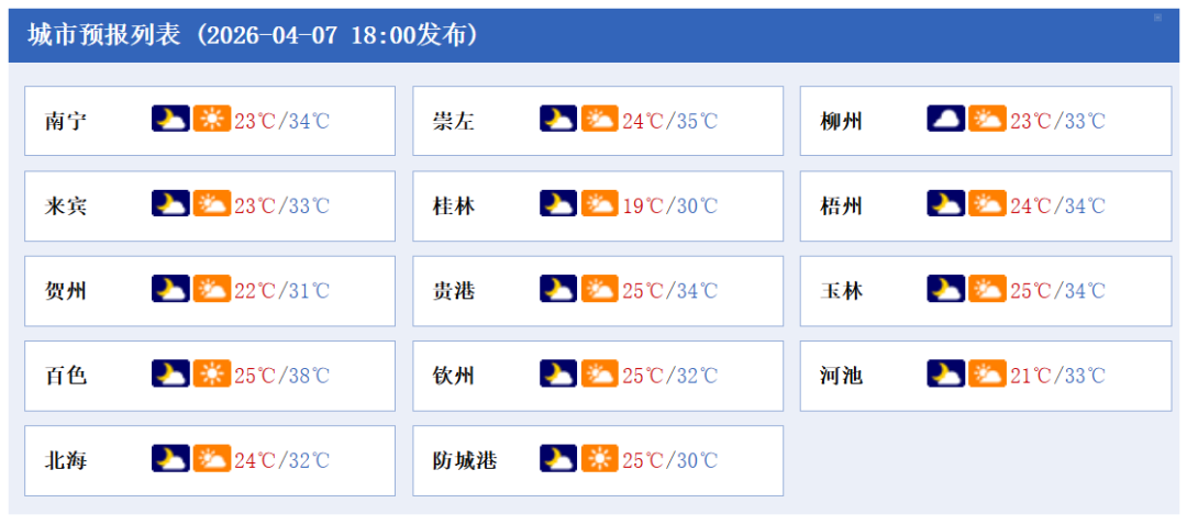 未来几天,西南暖低压将持续发力,南风还会加强,广西主打炎热天气,局地最高气温或飙升至39℃。(详情>>)