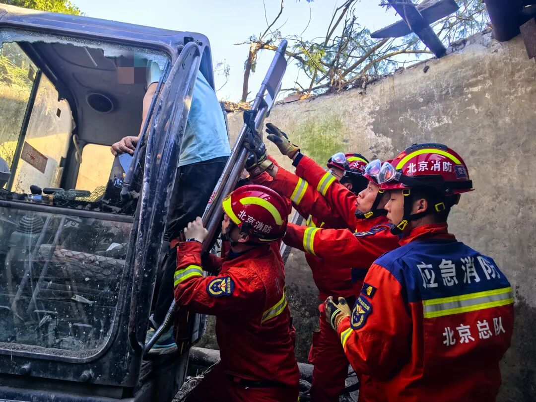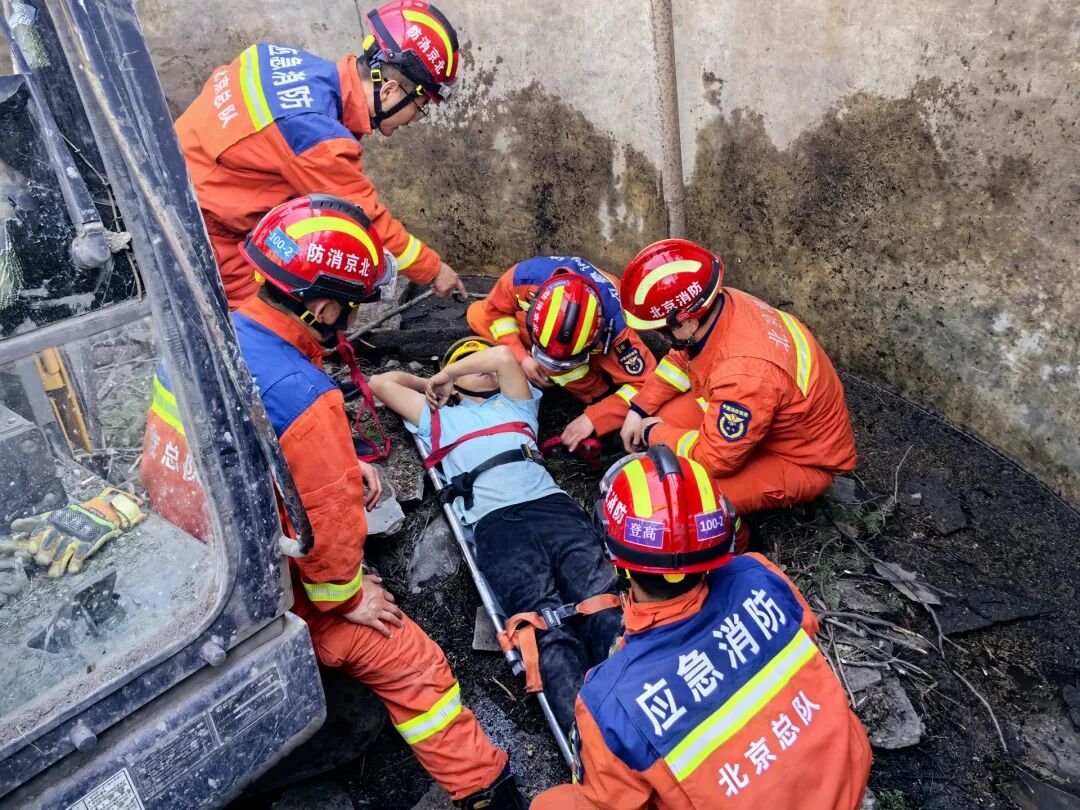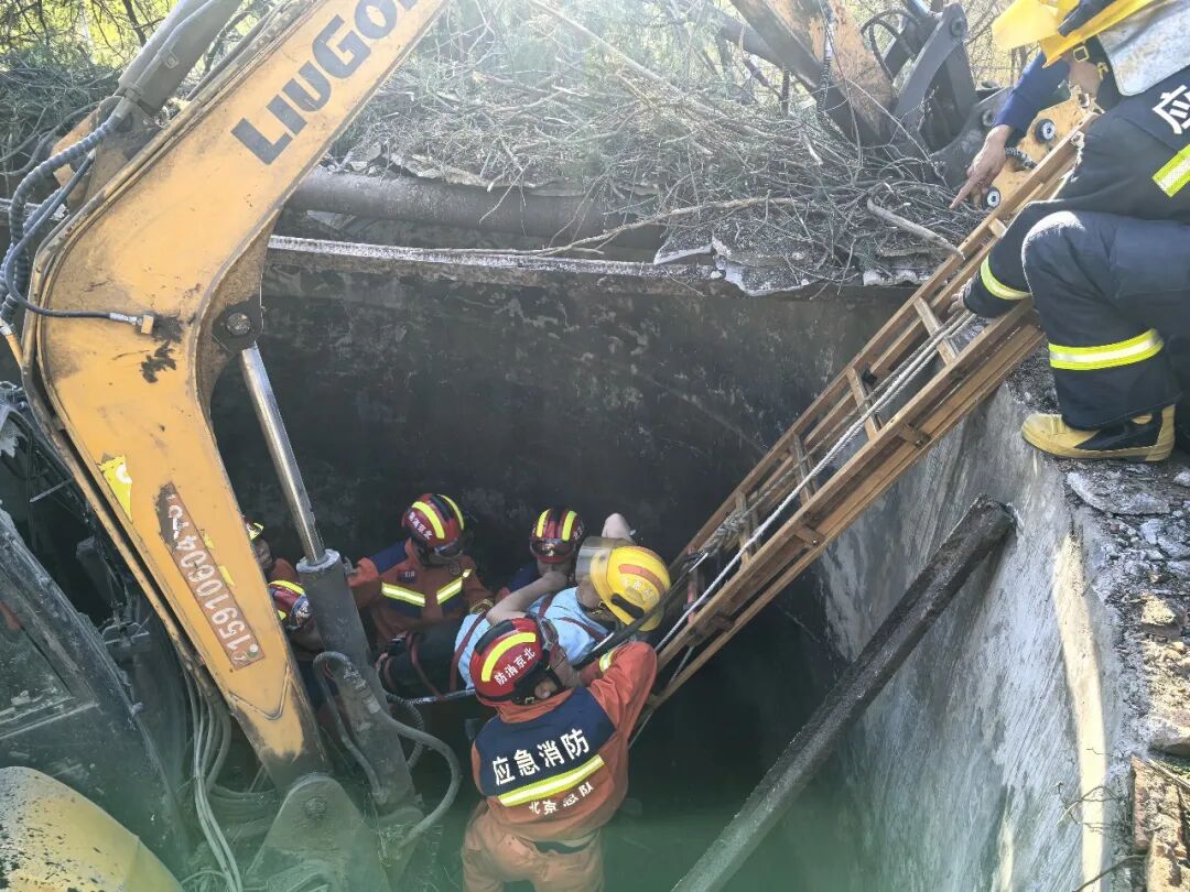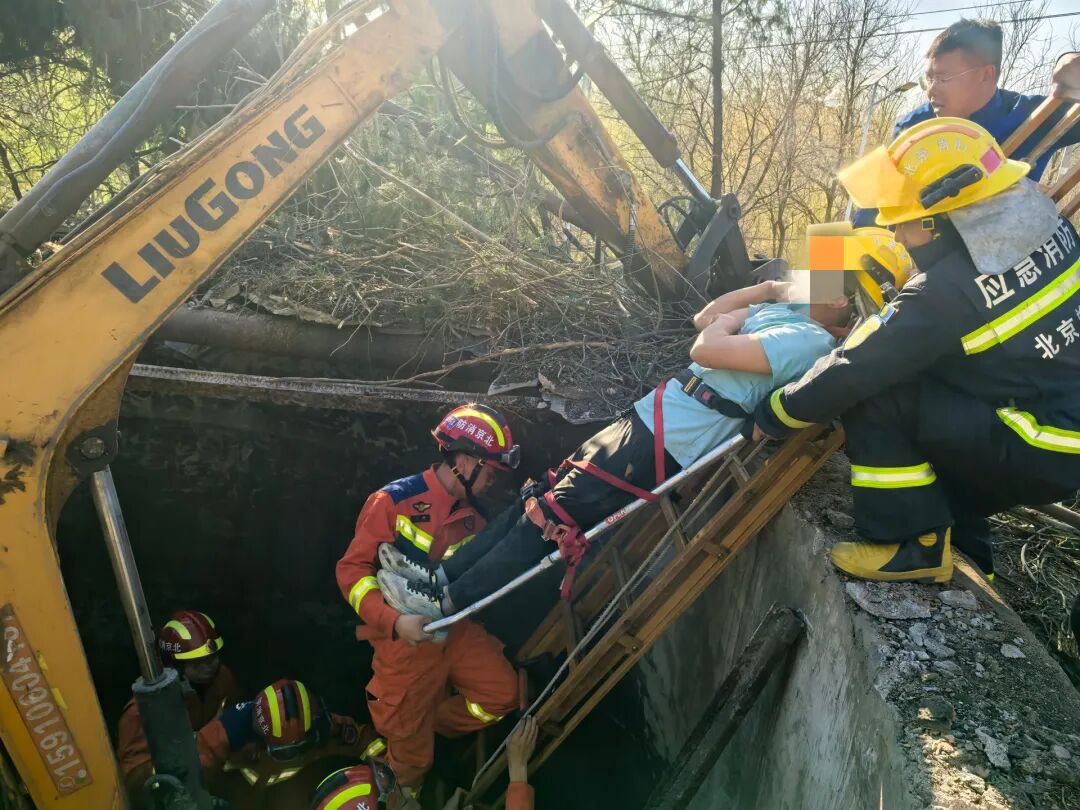 4月7日下午,北京市怀柔区一工地内,一挖掘机司机在作业时不慎连人带车坠入一口大井,腰部受伤无法动弹。消防员接到报警后立即赶赴现场,通过架设拉梯、固定担架等方式展开紧张救援,历时近一小时成功将被困司机安全救出并送医救治。