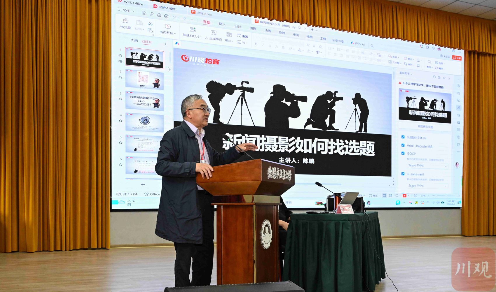 4月7日,一场聚焦新闻摄影实操痛点的能力提升培训在德阳举行。本次活动由德阳市摄影家协会、德阳老年大学主办,德阳老年大学传媒学院承办,C视觉影像数据库协办。活动吸引了市摄影家协会会员、老年大学摄影专业学员、成都锦江摄协特邀嘉宾及摄影爱好者300余人参与。四川日报“C视觉”影像库编辑陈鹏现场授课,围绕“选题+写作”全流程技巧,为摄影人破解投稿与创作难题。