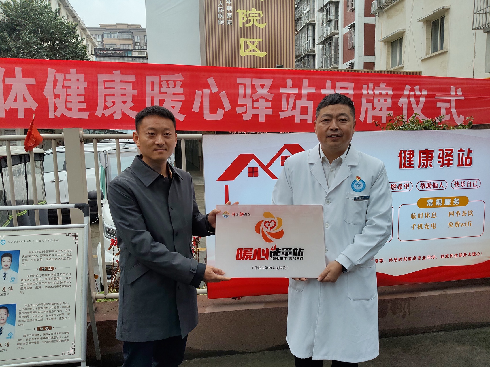 仪式中,什邡市卫健局与什邡市城乡基层治理促进中心相关负责人共同为“健康暖心驿站”揭牌。紧接着,写有“新兴领域从业人员健康服务定点机构”的牌匾,被授予什邡市第四人民医院。“这让我们觉得,自己的付出是被看见、被尊重的。”参与活动的一名快递网点负责人感慨道。