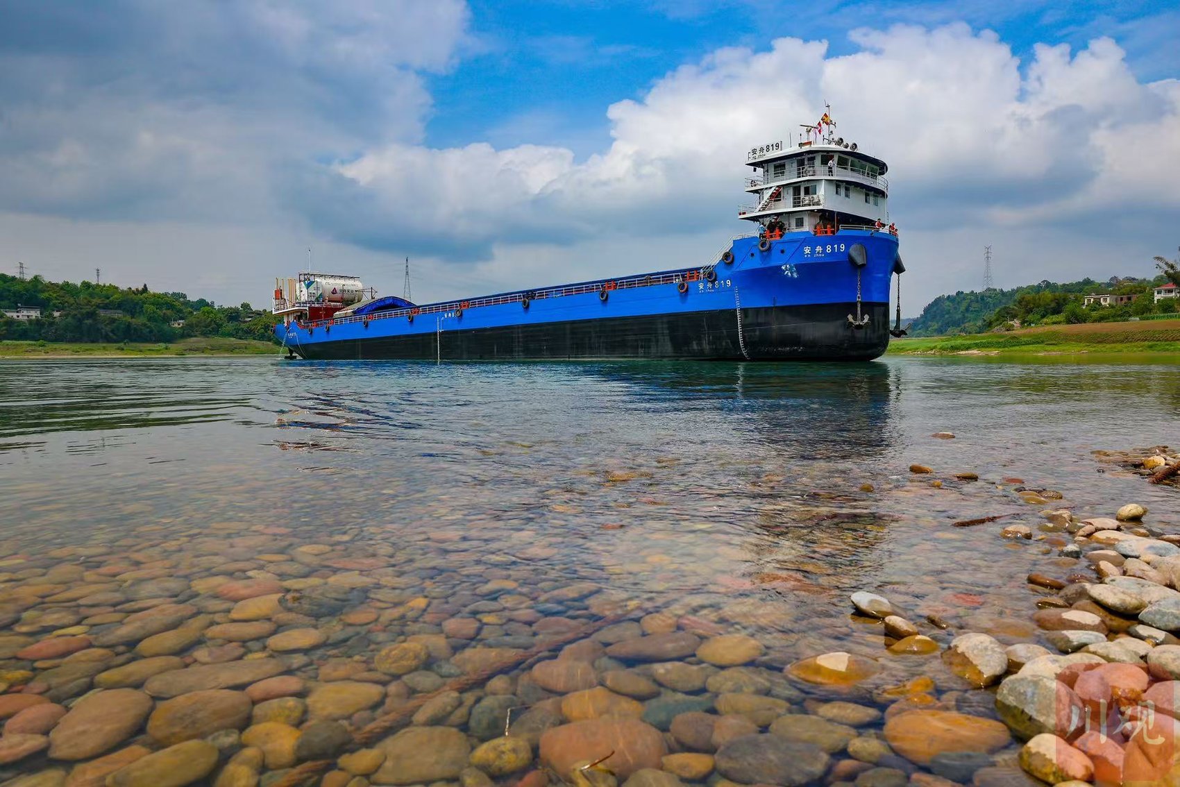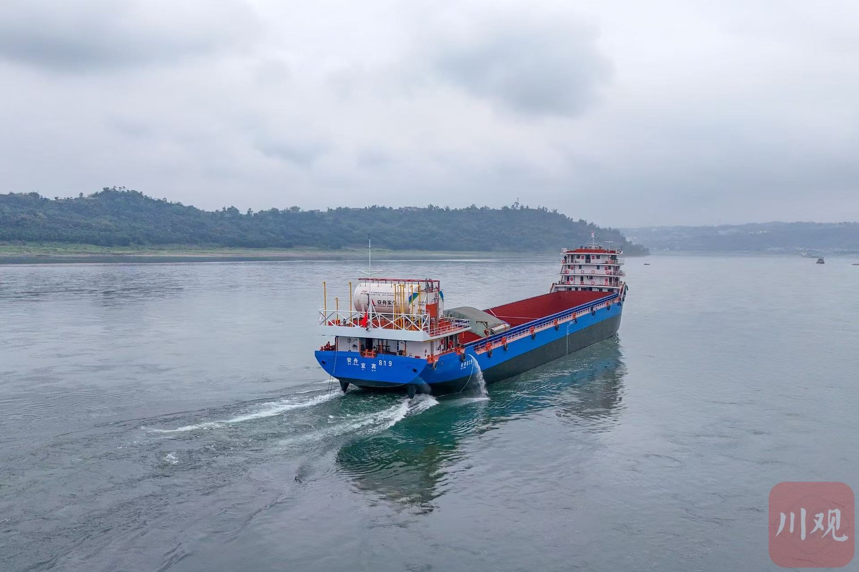 4月8日,在长江泸州段,随着低沉浑厚的鸣笛声响起,“安舟819”缓缓离岸,正式开始试航。
