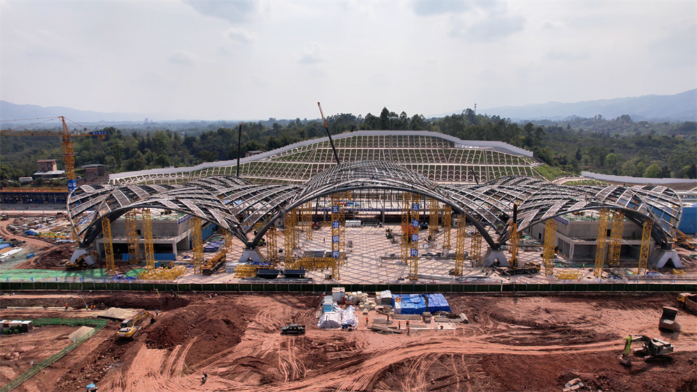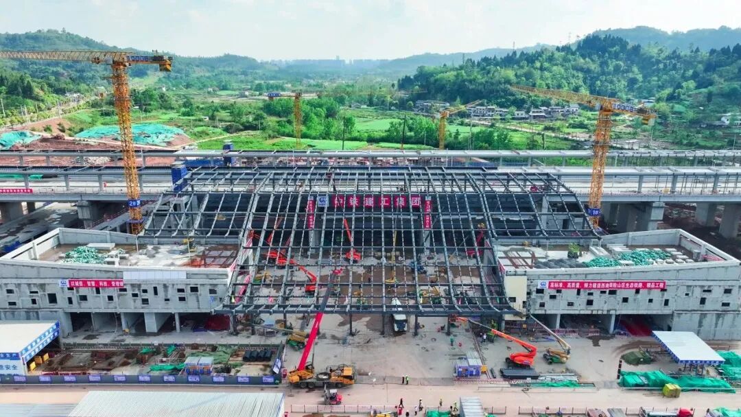目前,大足石刻站站房钢结构工程全面安装完成,标志着该站房主体结构施工收官,项目建设迈入后续施工新阶段。