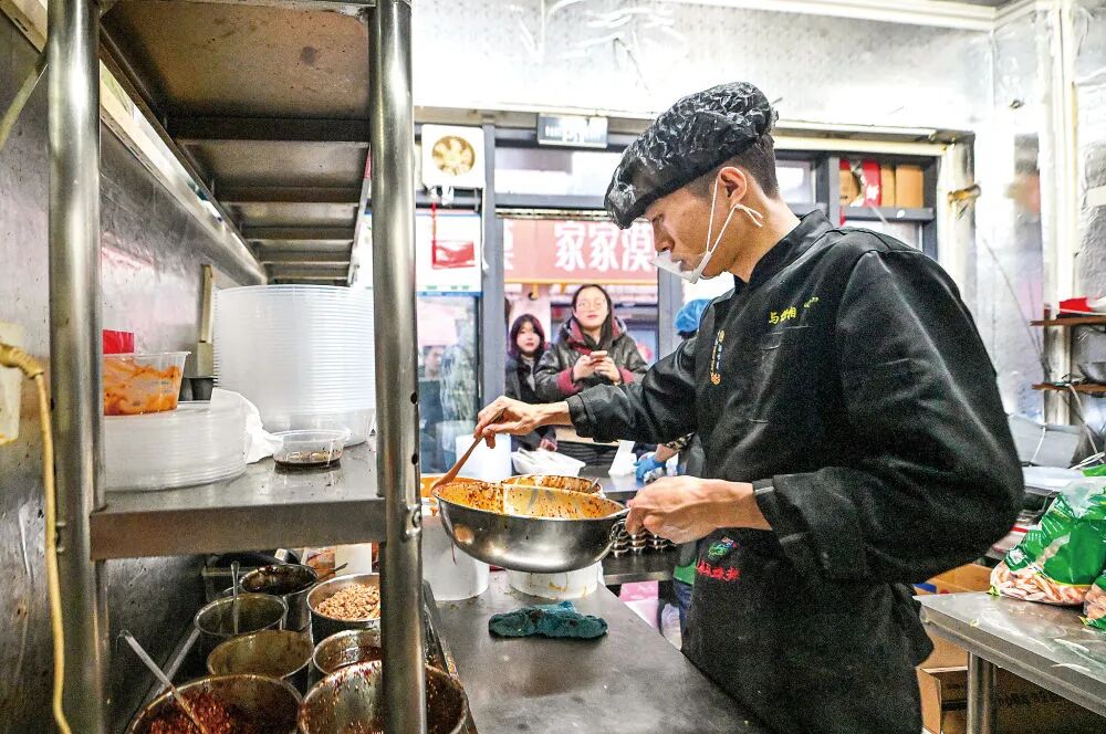 2026年年初的一天,纳国平站在店门口给客人烫菜