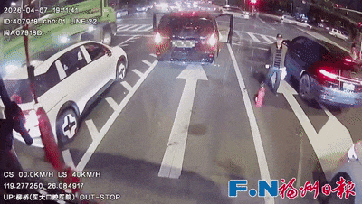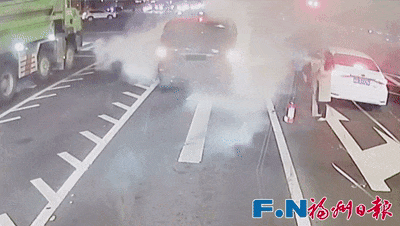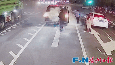 根据公交车内监控,19:10,22路公交车行驶至柳桥公交站附近等候信号灯时,前方车辆车尾冒出白烟,郑明焰立刻发现异常,下车拍打前车车门提醒车内人员:“着火了!着火了!”