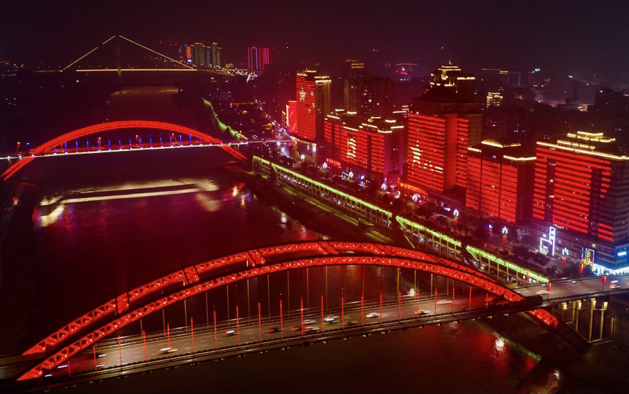 “宜宾的夜景简直美出了新高度!”连日来,不少夜归的宜宾人发现,主干道的大红灯笼陆续亮了起来,各类充满年味的灯组也点缀着长江两岸,“既有农历新年的喜庆,又是刷爆朋友圈的打卡点。”