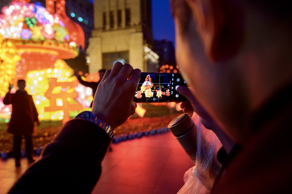川观新闻记者在夜晚的城区看到,“中国红”已成为宜宾街头冬日里最亮眼的底色,在翠屏区鼓楼广场、合江门广场、滨江公园、人民公园等各主要节点,都安装了形态丰富、造型各异的灯组,这些装饰在白天与绿树街道相映成趣,夜幕降临时,则扮靓城市的夜晚,吸引众多市民拍照留念。