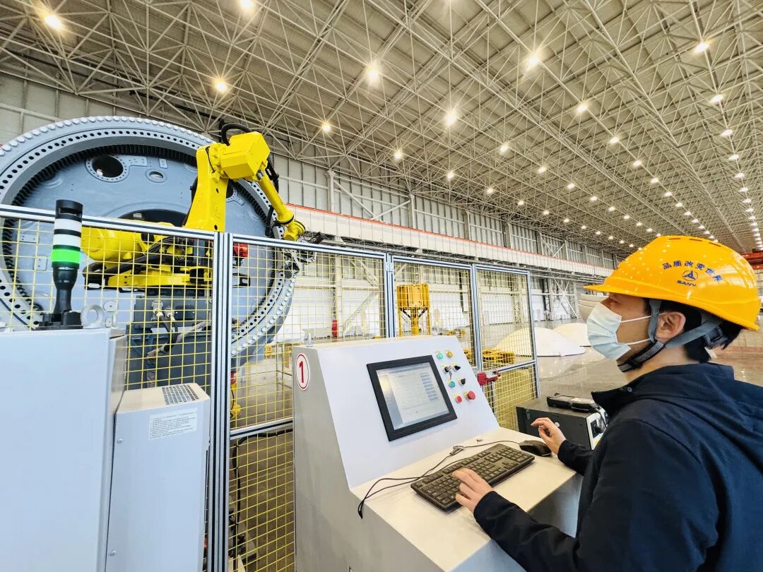 春日里的京津中关村科技城(以下简称科技城),百花竞放,活力尽显。在刚刚建成投用的三一(天津)风电装备有限公司生产车间,工人们正在操作柔性化智能生产线,进行试生产。“天津基地的产线可生产5 MW(兆瓦)至15 MW的风电机组全品类机型,目前试生产阶段为8小时/台,预计达产后可达到3小时/台,年产能将超过400台,生产效率、性能、品质等在行业处于领先水平。”企业生产经理李龙彪介绍。