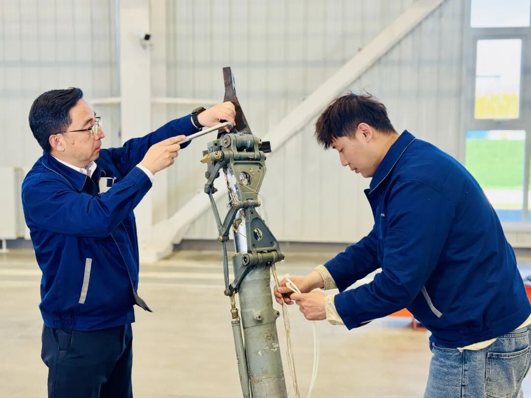在国机集团北京飞机强度研究所有限公司试验检测中心分公司实验区,工作人员正在调整实验件,并安装传感器。