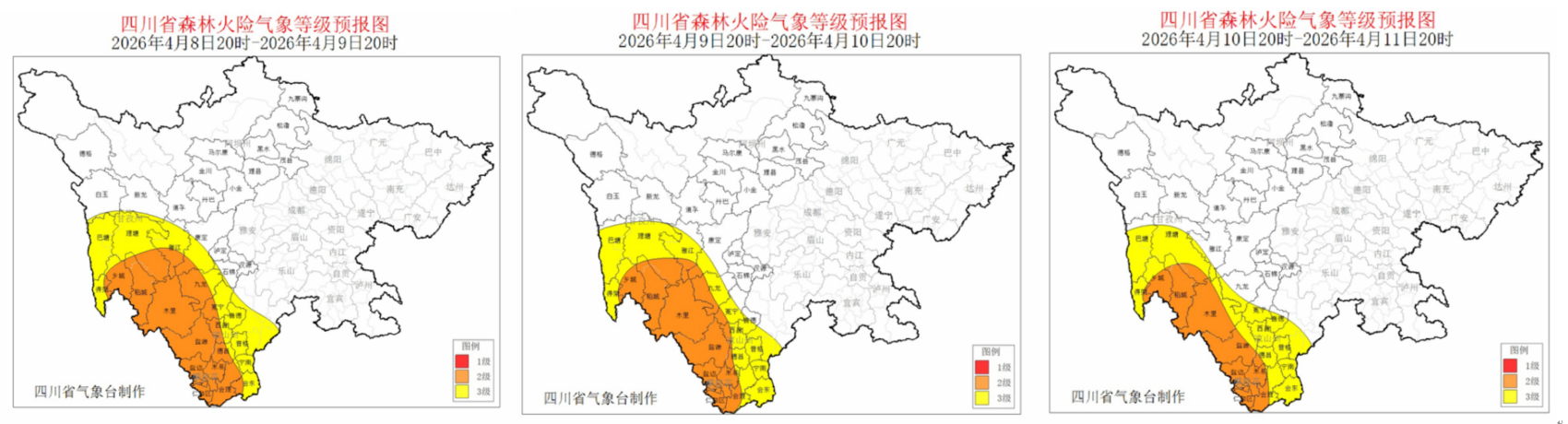 气象专家提醒,9日至11日,甘孜州南部和攀西地区大部降水较弱,午后到傍晚风力较大,森林草原火险气象等级较高,需加强火源管理和森林防火工作。