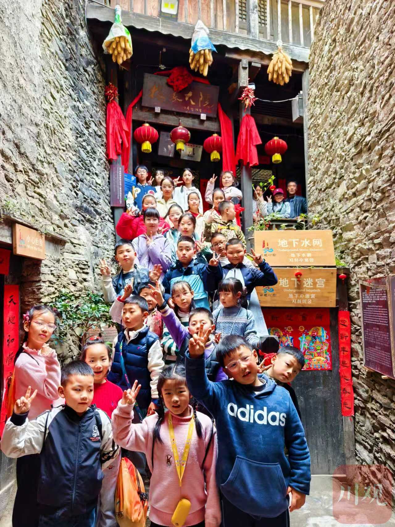 孩子们在桃坪羌寨研学地下水网的奥秘。 理县县委宣传部供图