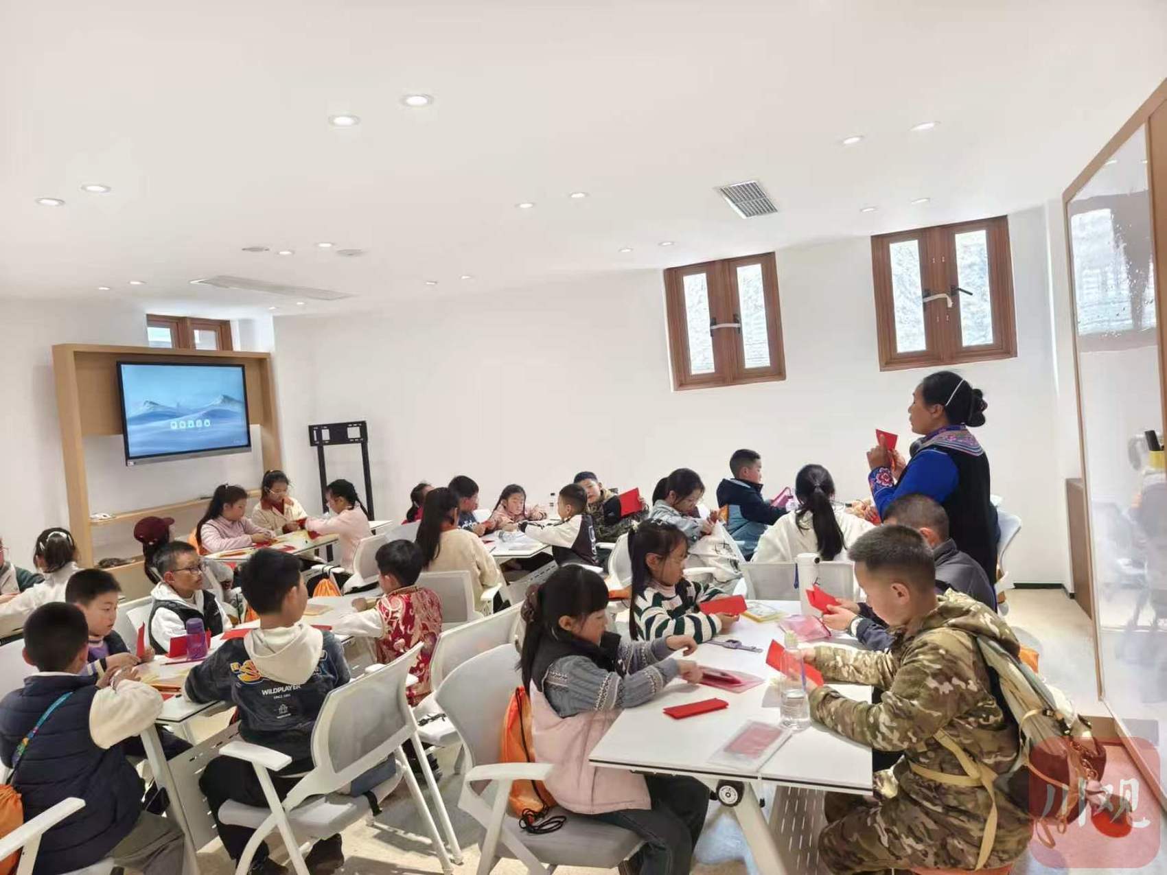 孩子们学习羌族剪纸。 理县县委宣传部供图