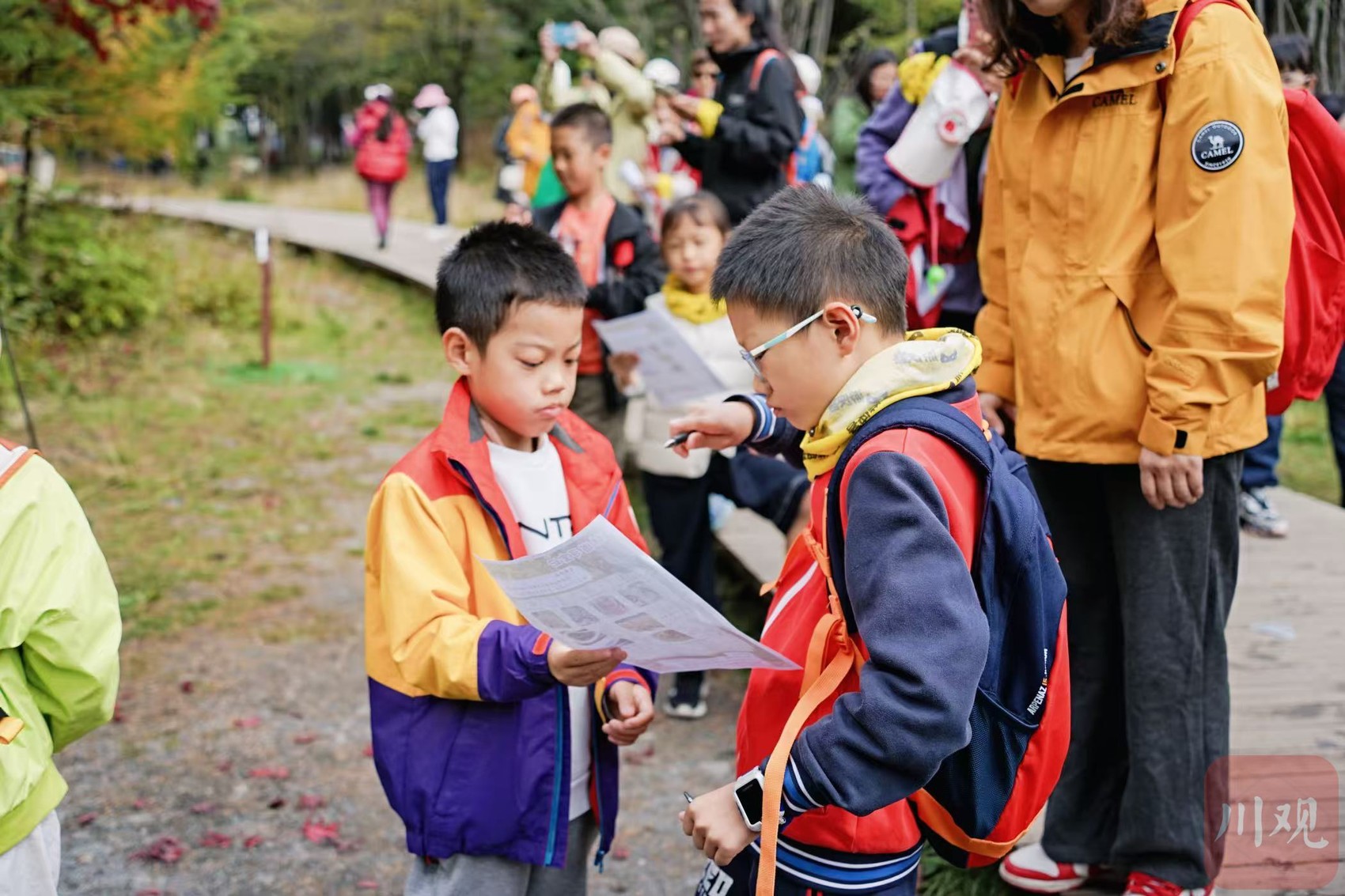 孩子们在毕棚沟学习辨认植物、昆虫等。 毕棚沟景区供图