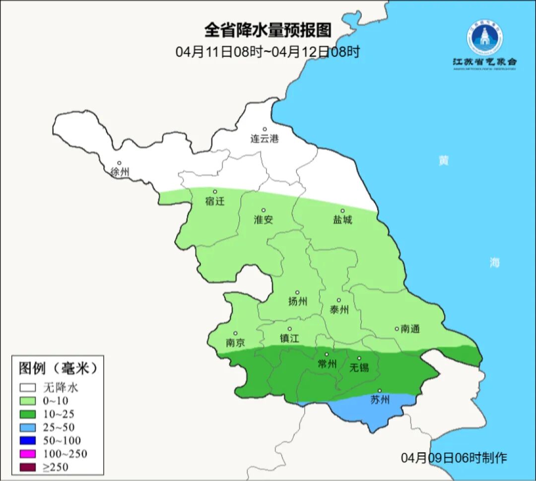 4月9日08时至4月10日08时,淮北北部地区阴转多云,其他地区阴有阵雨或雷雨并渐止转多云,其中苏南地区雨量中等,局部大雨。今天最高温度:苏南地区27-28℃,沿淮和淮北地区19-20℃,其他地区23℃左右;明晨最低温度:沿江和苏南地区15-16℃,淮北地区10-11℃,其他地区13℃左右。全省偏西风,风力:沿江和苏南地区5-6级阵风7级逐渐减弱至4级左右,其他地区4级左右,有雷雨地区雷雨时短时阵风7-9级。