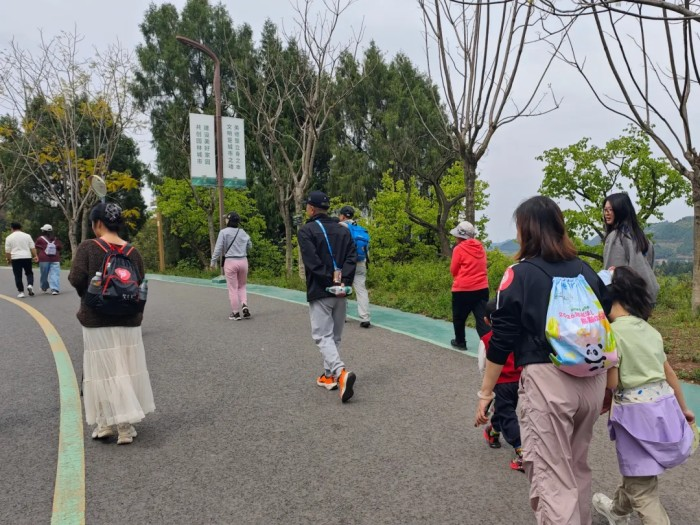 “清明兼具节气与节日双重内涵,踏青赏春、缅怀先人是其重要的传统习俗……”下午2点,亲子家庭在指定地点集合,在志愿者简要介绍清明文化、活动规则及注意事项后,全程3.3公里的生态步道徒步闯关之旅正式开启。