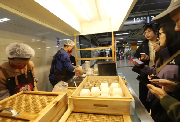 去年12月,成都地铁空间启动“早安熊猫”早餐工程,在客流较大的地铁站运营数十家早点铺,辐射交通枢纽、医院、学校、商务办公区等。对于赶时间的乘客来说,可在途中手机下单,到站提走早餐。截至目前,成都地铁全线网已卖出超10万份早餐。