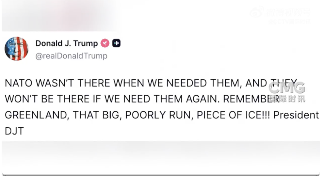 会晤后,特朗普在社交媒体上用大写字母发帖称:“当我们需要北约时,他们不在场,如果需要我们再次出手,他们也不会在场。”并写道:“还记得格陵兰岛吗?那块大而管理糟糕的冰!”