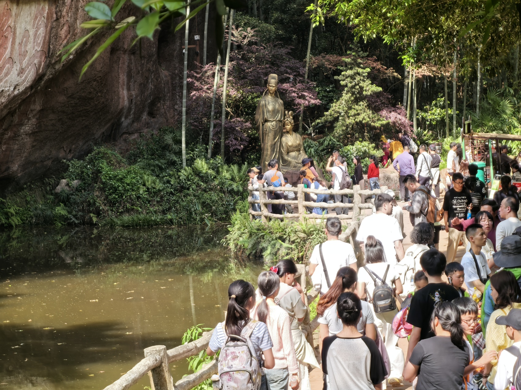 游客漫步于唤鱼池畔。 王丽/摄