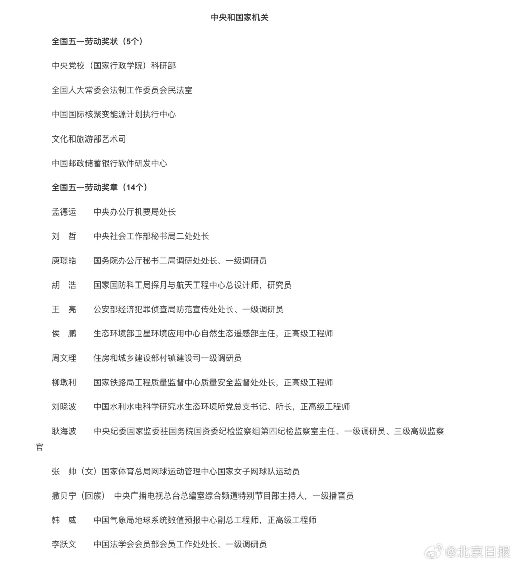 央视主持人撒贝宁、网球“金花”张帅、宁夏“玫瑰”何杰等,拟获全国五一劳动奖章。